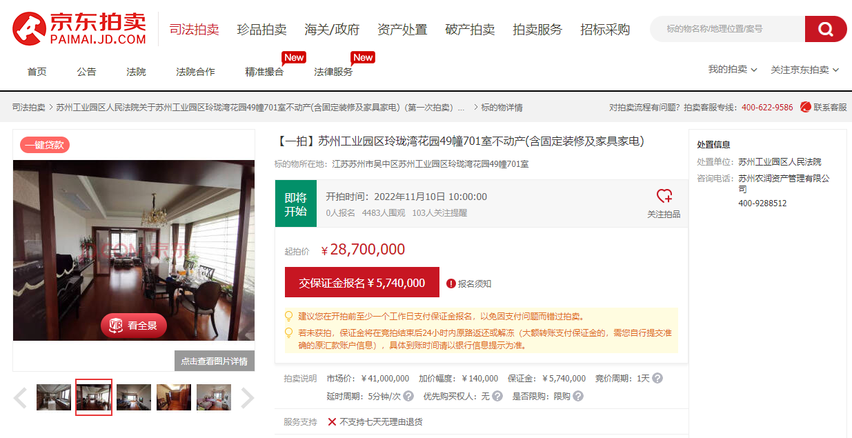 一年一度的京東11.11即將迎來高潮,蘇州兩級法院聯(lián)合京東拍賣開啟京東11.11蘇州法拍節(jié)活動,為廣大消費者帶來超高性價比的優(yōu)質(zhì)拍品,28萬起拍的頂級超跑寶馬i8、玲瓏灣豪華大平層、近50套蘇州優(yōu)質(zhì)住宅、上百件金銀玉石首飾等,滿足多元化的消費需求。同時蘇州兩級法院聯(lián)合京東拍賣,提供保證金保險、法拍房貸款、小件動產(chǎn)郵寄等特色服務,最大限度為廣大競買人提供便利,為人民群眾辦實事。