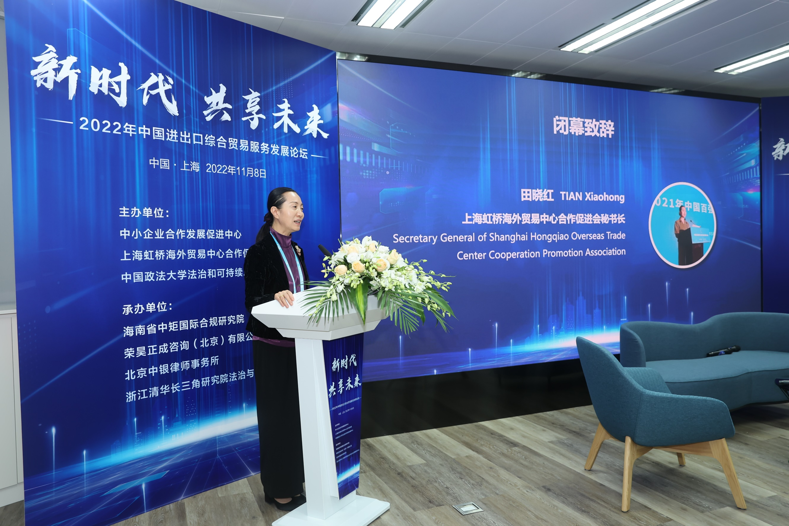2022年11月8日,由中小企業(yè)合作發(fā)展促進中心、上海虹橋海外貿易中心合作促進會、中國政法大學法治與可持續(xù)發(fā)展中心共同主辦的“2022年中國進出口綜合貿易服務發(fā)展論壇”在上海虹橋海外貿易中心隆重舉行,政府領導、專家學者、企業(yè)代表共同探討綜合貿易服務變化及貿易合規(guī)挑戰(zhàn)。