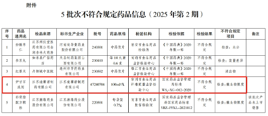 4月7日,江蘇省藥品監(jiān)督管理局發(fā)布關(guān)于江蘇省2025年第2期藥品質(zhì)量的通告(2025年 第2號(hào))顯示,經(jīng)常州市食品藥品纖維質(zhì)量監(jiān)督檢驗(yàn)中心檢驗(yàn),迪賽諾制藥生產(chǎn)的爐甘石洗劑(藥品規(guī)格:100ml/瓶、批號(hào):47240704)不符合規(guī)定,藥品不合格項(xiàng)目為微生物限度,檢驗(yàn)依據(jù)為國(guó)家藥品監(jiān)督管理局標(biāo)準(zhǔn)WS1-XG-012-2020。