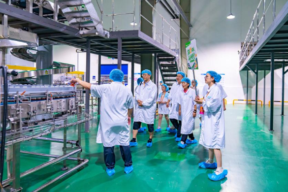 在生產(chǎn)車間,各類先進生產(chǎn)線有序運轉(zhuǎn),展現(xiàn)出現(xiàn)代化飲品生產(chǎn)的嚴(yán)謹(jǐn)與高效。工作人員詳細(xì)介紹了“潤家”飲料從原料生產(chǎn)、運輸,到配方研發(fā)、灌裝生產(chǎn)的全流程品控環(huán)節(jié)。從優(yōu)質(zhì)原料的嚴(yán)格篩選,到運輸過程中的保鮮措施,再到配方研發(fā)時對健康元素的精準(zhǔn)把控,以及超高溫滅菌黑科技、全程無菌灌裝、多道質(zhì)檢程序,每一個細(xì)節(jié)都體現(xiàn)著對飲品品質(zhì)的極致追求。