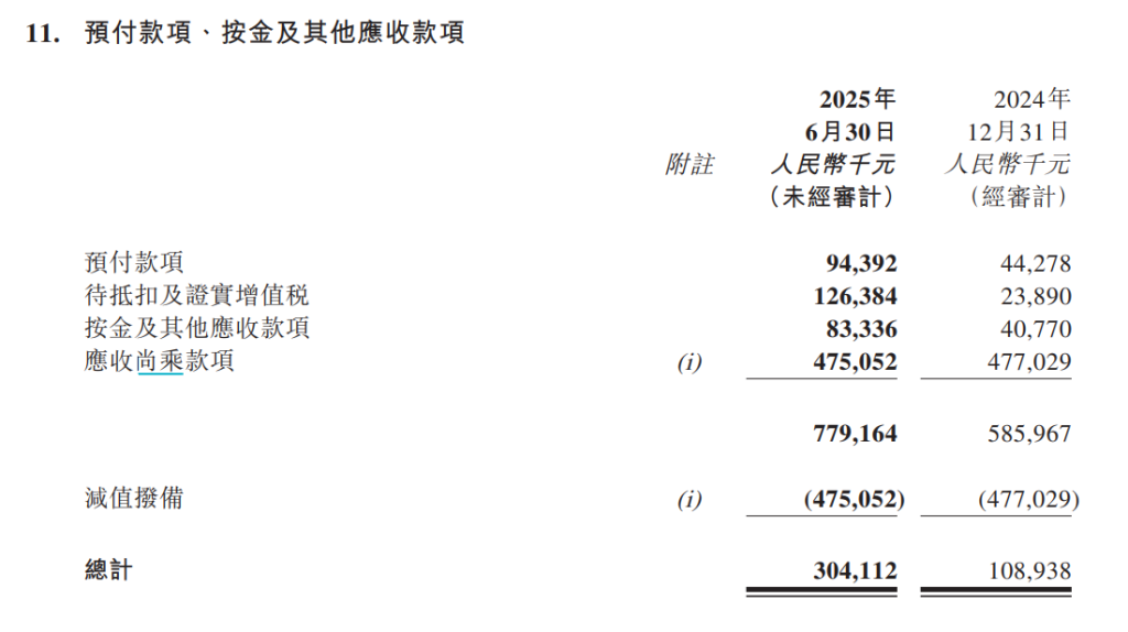 同樣是2025年半年報披露的數(shù)據(jù)顯示,復宏漢霖應收尚乘款項為4.75億元, 減值撥備為4.75億元。