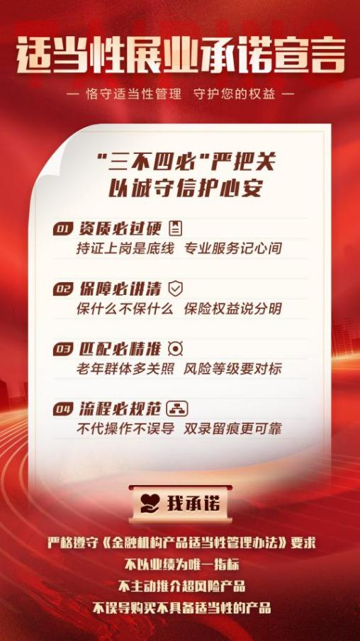 圖為太平人壽業(yè)務人員“適當性展業(yè)承諾宣言”海報