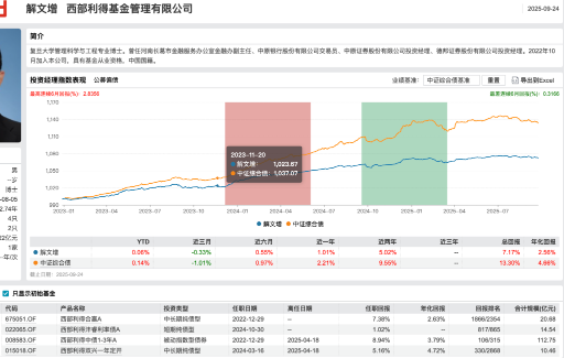 從基金業(yè)績(jī)情況來看,解文增自2022年12月29日起開始管理西部利得合贏,截至2025年9月24日,西部利得合贏A的任職回報(bào)為7.38%、年化回報(bào)為2.63%,在全市場(chǎng)排名處于末位20%。