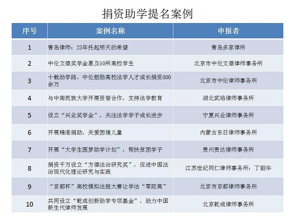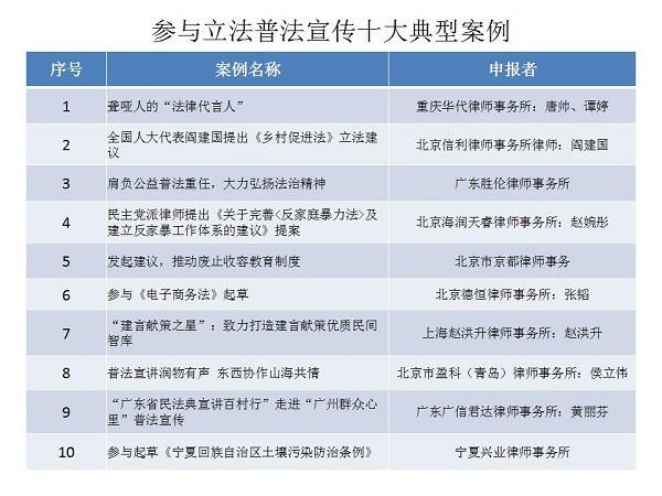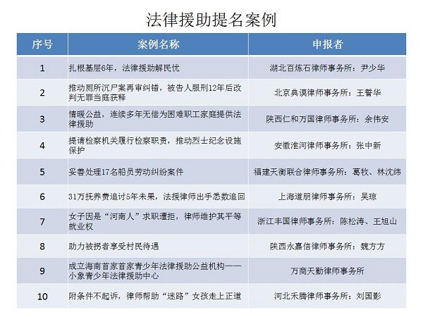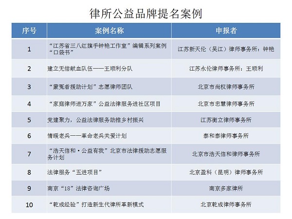 結合公眾投票和專家評審,十大律師公益類別最終產(chǎn)生了一百個典型案例,一百個提名案例。