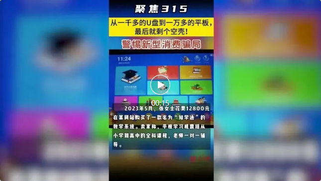 2023年,中國消費者報發(fā)文提醒“警惕買學(xué)習(xí)資料贈平板電腦學(xué)習(xí)機的騙局”。文章稱其為新型消費騙局。商家的套路可以解析為,以“免費贈送”平板電腦為噱頭,鼓吹配套學(xué)習(xí)資料的質(zhì)量與教育競爭壓力,令家長在望子成龍的焦慮期盼情緒中盲目付款。而實際上,贈送的平板學(xué)習(xí)機存在質(zhì)量差、學(xué)習(xí)資料不配套等問題,售后也常常不能保證。