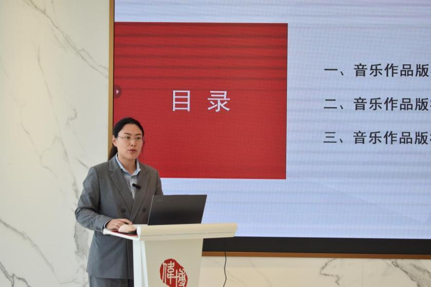 偉博律所合伙人周偉以《音樂(lè)作品司法保護(hù)難點(diǎn)與應(yīng)對(duì)》為題,結(jié)合自身多年法律服務(wù)經(jīng)驗(yàn),分析音樂(lè)作品版權(quán)司法保護(hù)的背景、困境和對(duì)策。她結(jié)合《人工智能生成合成內(nèi)容標(biāo)識(shí)辦法》中對(duì)于人工智能服務(wù)提供者、AI傳播服務(wù)平臺(tái)、互聯(lián)網(wǎng)分發(fā)平臺(tái)和用戶的要求規(guī)定,分析完善、強(qiáng)化知識(shí)產(chǎn)權(quán)保護(hù)制度的路徑,呼吁推進(jìn)司法保護(hù)、行政保護(hù)、權(quán)利人自我保護(hù)三者的協(xié)同保護(hù)。