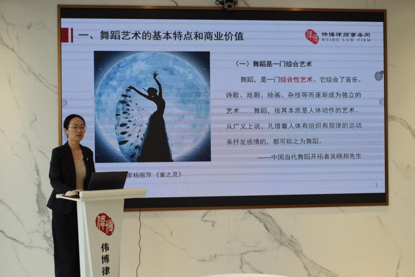 偉博律所高級(jí)合伙人鮑爽以《舞蹈形象司法保護(hù)前沿》為題,對(duì)舞蹈藝術(shù)的基本特點(diǎn)和商業(yè)價(jià)值、司法實(shí)踐中的保護(hù)現(xiàn)狀及法律保護(hù)的前沿?zé)狳c(diǎn)問(wèn)題分享了自己的觀點(diǎn)。鮑律師以其主辦的《月光》舞蹈作品案為切入點(diǎn),深入剖析舞蹈形象在著作權(quán)保護(hù)中的特殊性:舞蹈動(dòng)態(tài)表達(dá)的非固定性導(dǎo)致其“靜態(tài)造型”難以獲得傳統(tǒng)著作權(quán)法的充分保護(hù),而實(shí)質(zhì)性相似侵權(quán)比對(duì)中動(dòng)作編排、視覺(jué)呈現(xiàn)等多維度的復(fù)雜性亦構(gòu)成司法認(rèn)定難點(diǎn)。