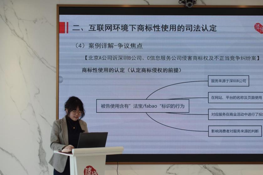 偉博律所涉外部副部長(zhǎng)周易凡以《互聯(lián)網(wǎng)環(huán)境下商標(biāo)性使用的司法認(rèn)定》為題,分析討論了互聯(lián)網(wǎng)環(huán)境下商標(biāo)性使用的新場(chǎng)景,結(jié)合具體案例的司法認(rèn)定分享了前沿實(shí)務(wù)啟示。周易凡結(jié)合司法實(shí)踐中的經(jīng)典案例,系統(tǒng)闡釋了互聯(lián)網(wǎng)商標(biāo)性使用的認(rèn)定邊界、核心判斷標(biāo)準(zhǔn),以及認(rèn)定商標(biāo)侵權(quán)行為的判斷標(biāo)準(zhǔn),呼吁互聯(lián)網(wǎng)環(huán)境下的商標(biāo)性使用認(rèn)定需兼顧技術(shù)特征與商業(yè)邏輯,司法機(jī)關(guān)需在保護(hù)商標(biāo)權(quán)與促進(jìn)技術(shù)創(chuàng)新間尋求平衡。