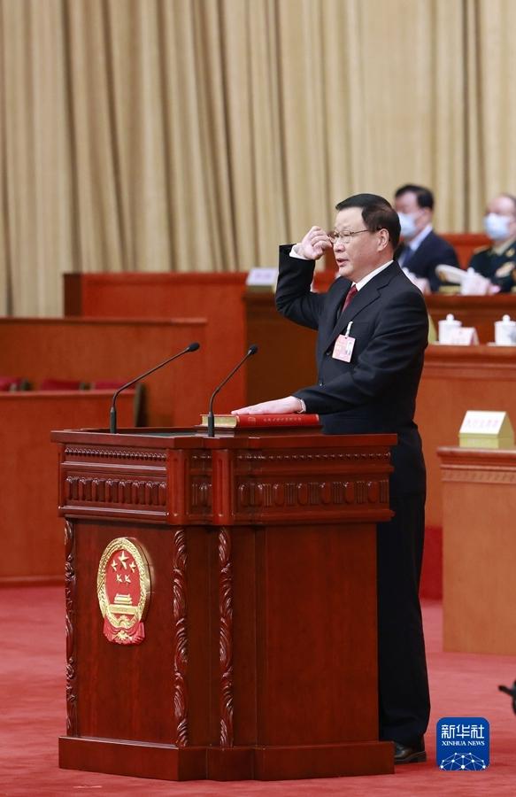 3月11日,十四屆全國人大一次會議在北京人民大會堂舉行第四次全體會議。應勇當選為中華人民共和國最高人民檢察院檢察長。這是應勇進行憲法宣誓。