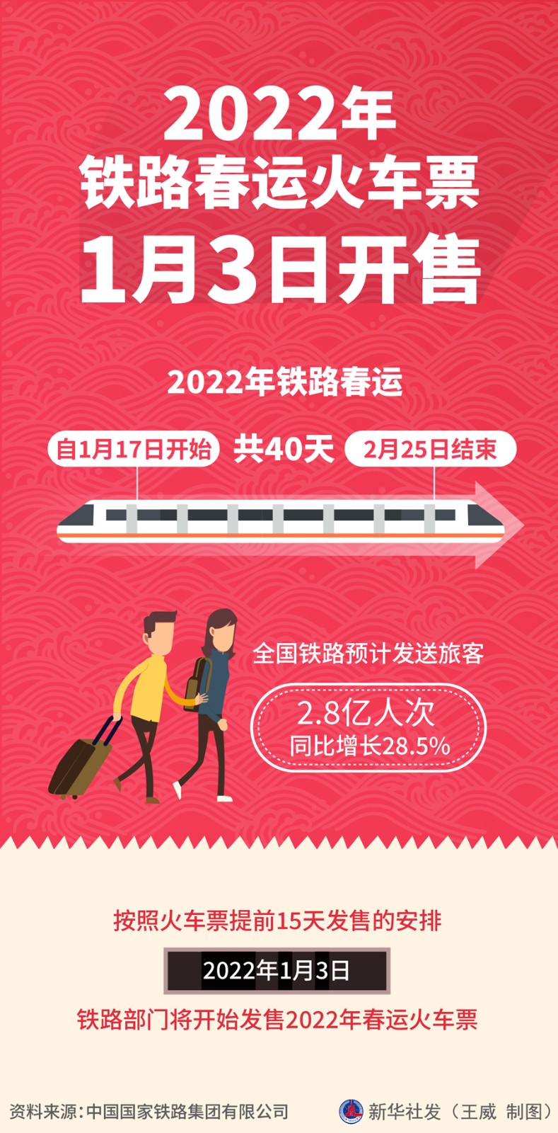 圖表:2022年鐵路春運(yùn)火車票1月3日開售