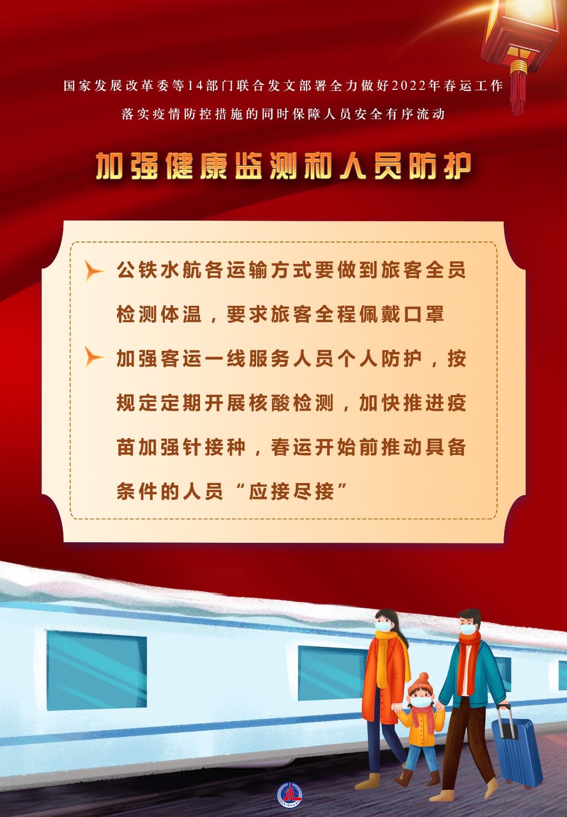 國(guó)家發(fā)展改革委等14部門(mén)聯(lián)合發(fā)文部署全力做好2022年春運(yùn)工作,落實(shí)疫情防控措施的同時(shí)保障人員安全有序流動(dòng)。