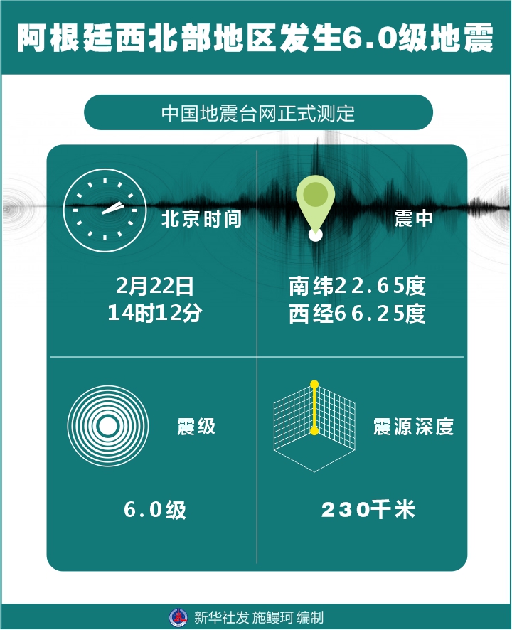 圖表:阿根廷西北部地區(qū)發(fā)生6.0級(jí)地震