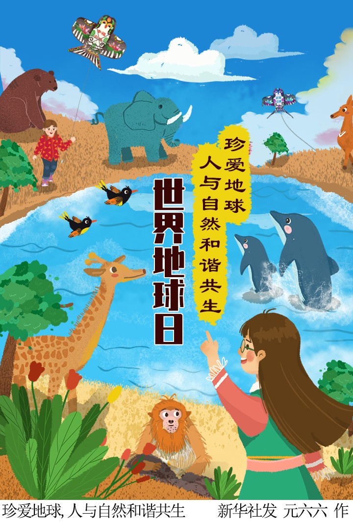 插畫:珍愛地球,人與自然和諧共生