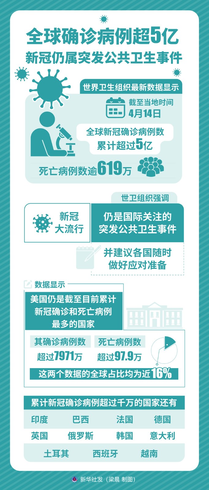 圖表:全球確診病例超5億 新冠仍屬突發(fā)公共衛(wèi)生事件