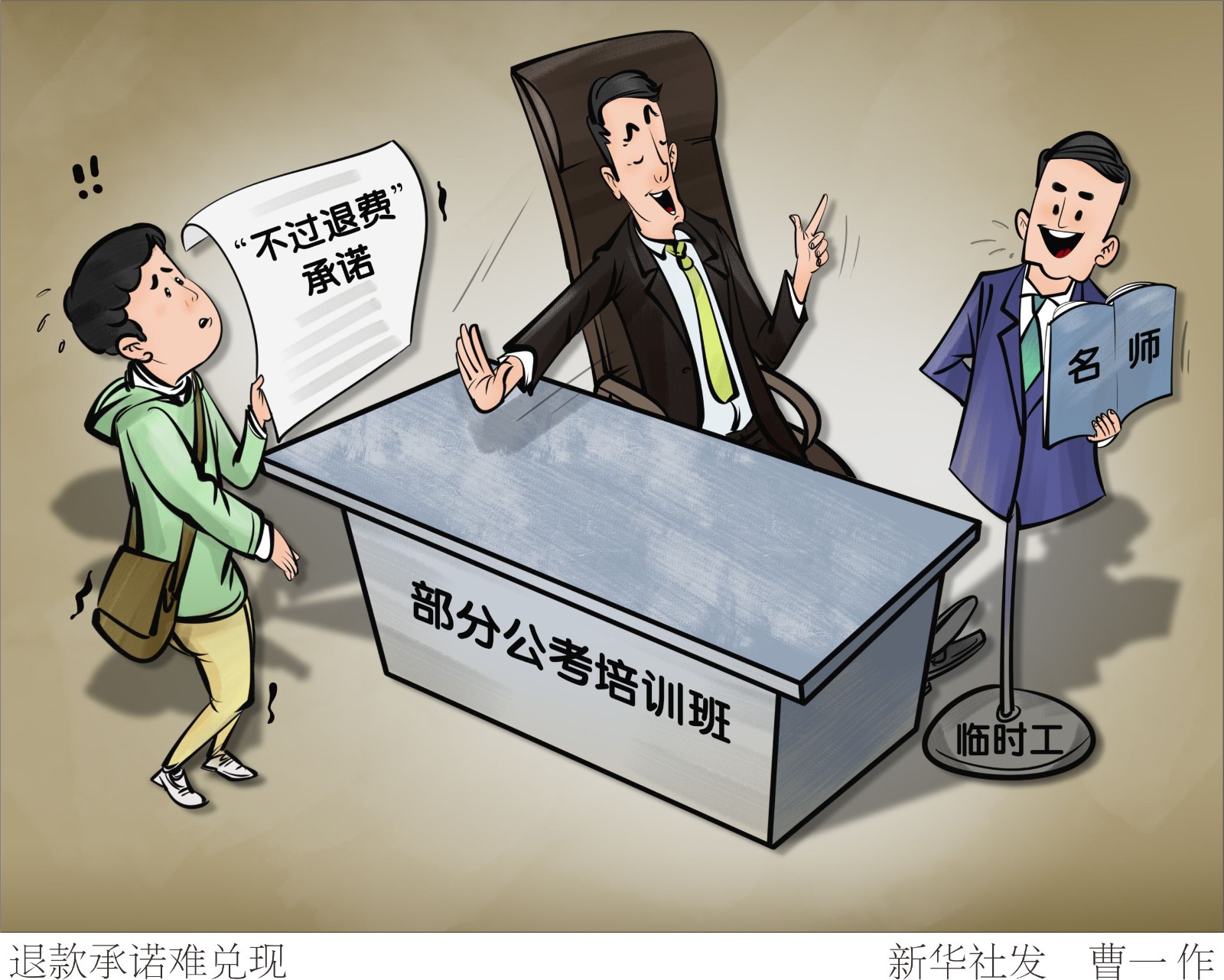 眼下,國(guó)家、地方公務(wù)員及選調(diào)生考試筆試大都已經(jīng)結(jié)束,一些地方面試因疫情推遲。為應(yīng)對(duì)公考筆試、面試,不少大學(xué)畢業(yè)生參加各種培訓(xùn)班?!靶氯A視點(diǎn)”記者調(diào)查發(fā)現(xiàn),有些培訓(xùn)機(jī)構(gòu)所謂的“名師”,竟是招聘的“臨時(shí)工”;所謂“不過(guò)退費(fèi)”,有的難以實(shí)現(xiàn)。
