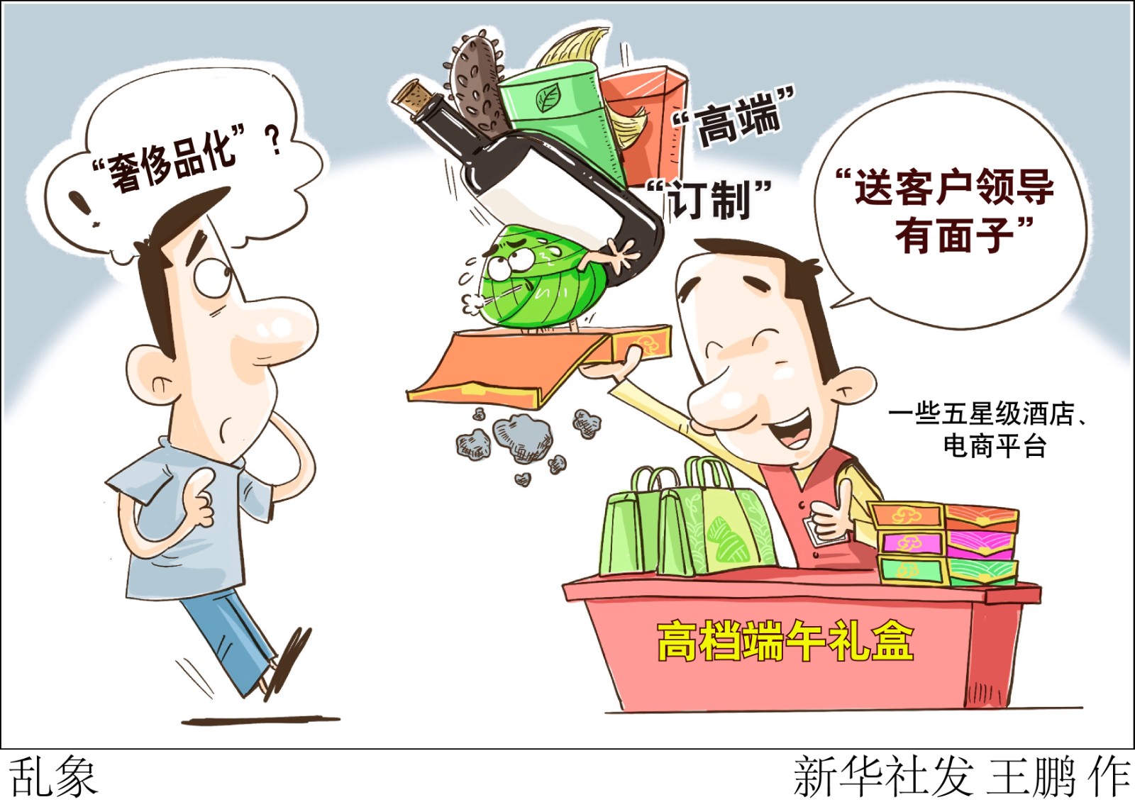 臨近端午節(jié),粽子銷售進(jìn)入高峰期。近年來,相關(guān)部門一直大力整治粽子市場的過度包裝與“奢侈品化”。然而,“新華視點(diǎn)”記者近日在全國多地采訪發(fā)現(xiàn),一些五星級酒店、電商平臺銷售的粽子,經(jīng)過豪華包裝價(jià)格超千元,海鮮、紅酒、茶葉等高檔禮品成為禮盒搭售標(biāo)配。有銷售人員坦言,高價(jià)粽子禮盒大多用于“打點(diǎn)關(guān)系”。