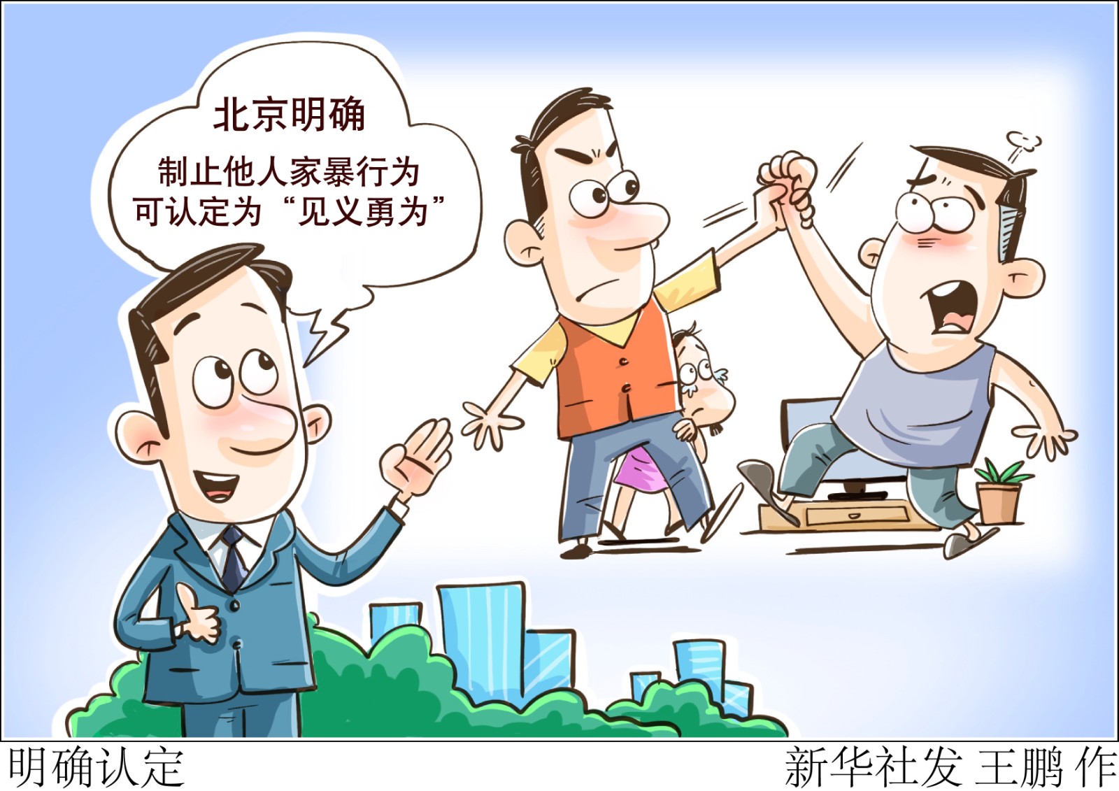 在北京市委社會工委市民政局6月10日舉行的新聞發(fā)布會上,北京市委社會工委市民政局二級巡視員張青之介紹,北京正式啟動第四屆北京市見義勇為宣傳月暨第十三屆首都見義勇為好市民社會化評選活動。制止他人的家暴行為等情形,符合確認(rèn)條件的,可以認(rèn)定為“見義勇為”。