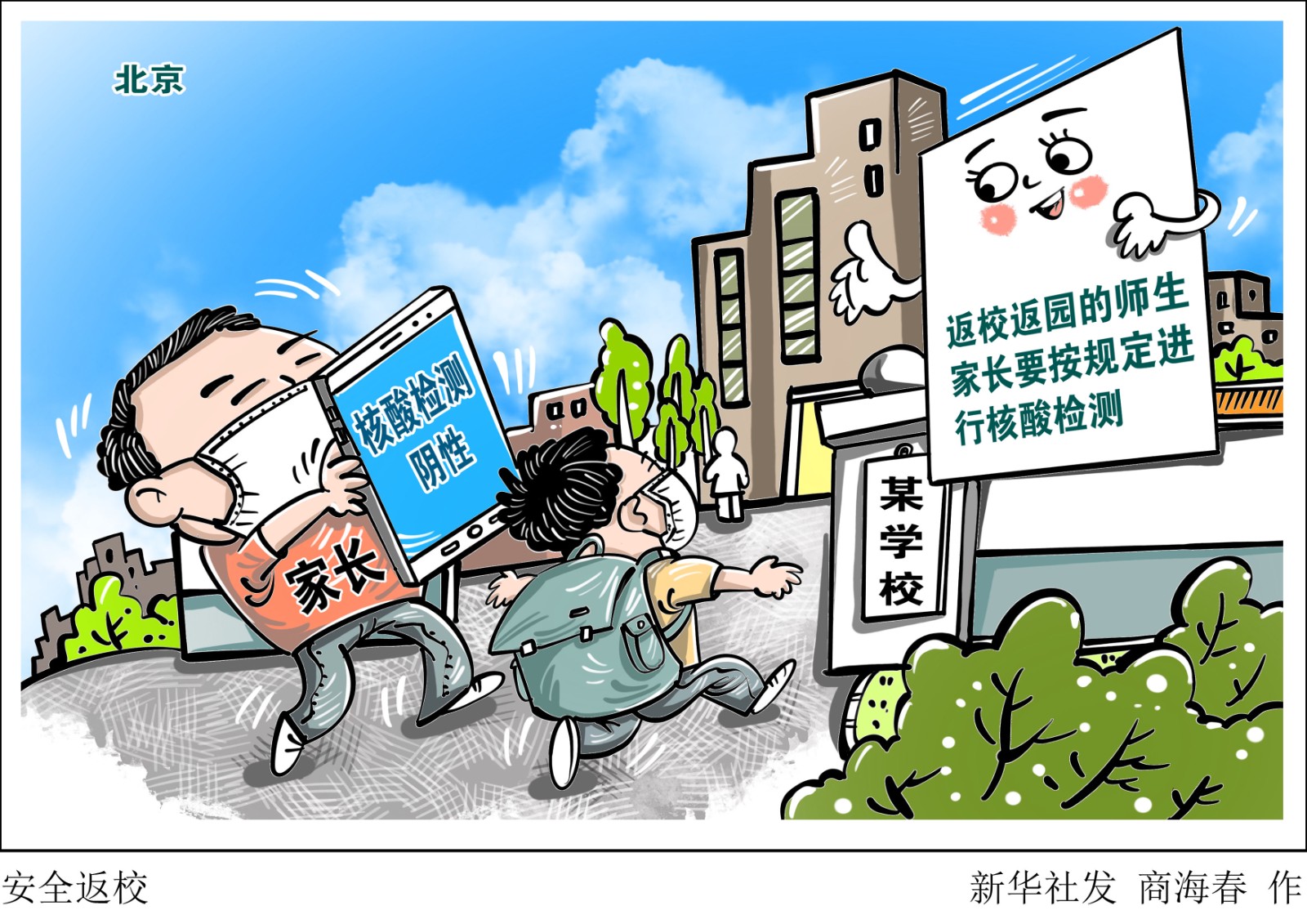 在6月26日北京市新型冠狀病毒肺炎疫情防控工作新聞發(fā)布會上,北京市委宣傳部副部長、市政府新聞辦主任、市政府新聞發(fā)言人徐和建提示,家長要時刻關注孩子的健康狀況,及時完成返校前學生的核酸檢測,確保平安健康返校。師生和家長要按規(guī)定進行核酸檢測,核酸檢測時應戴好口罩、有序排隊、保持安全社交距離。