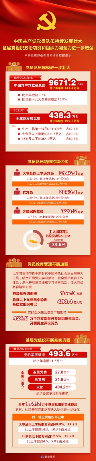 圖表:中國(guó)共產(chǎn)黨黨員隊(duì)伍持續(xù)發(fā)展壯大 基層黨組織政治功能和組織力凝聚力進(jìn)一步增強(qiáng)