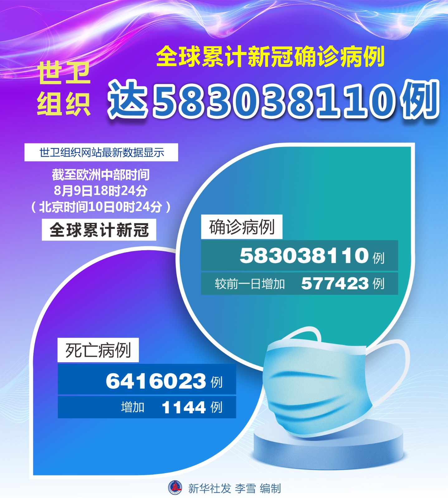 (圖表)世衛(wèi)組織:全球累計新冠確診病例達583038110例