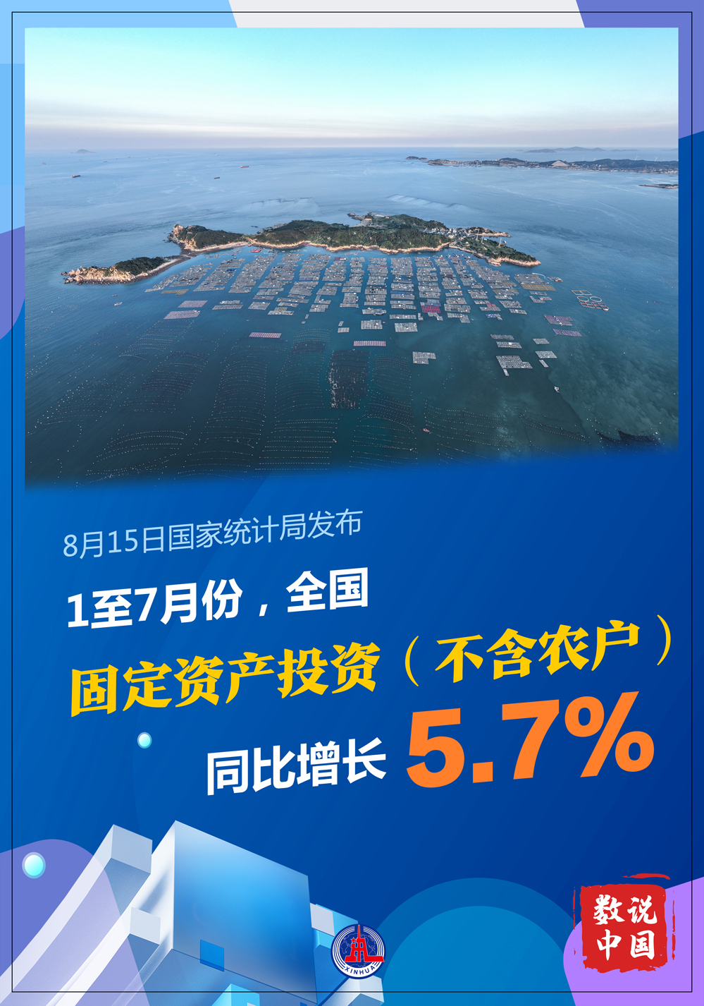 國家統(tǒng)計局8月15日發(fā)布數(shù)據(jù)顯示,1至7月份,全國固定資產(chǎn)投資(不含農(nóng)戶)319812億元,同比增長5.7%;7月份環(huán)比增長0.16%。