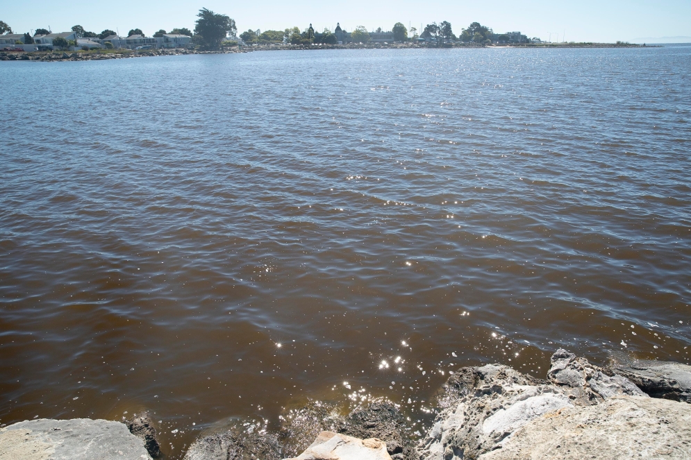 8月22日,美國加利福尼亞州舊金山灣區(qū)阿拉米達(dá)縣的一處海面呈現(xiàn)棕色。