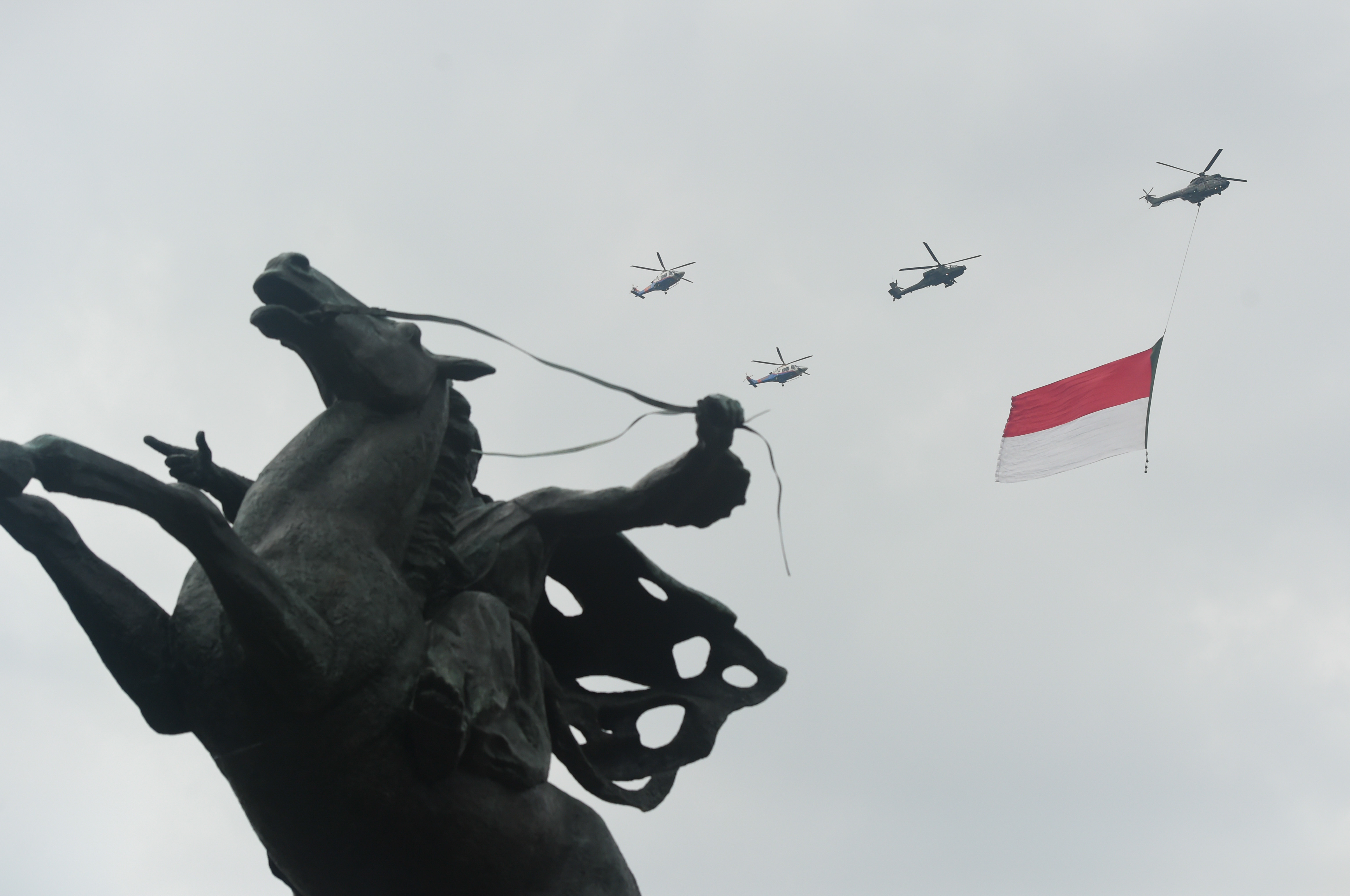 8月17日,懸掛印度尼西亞國(guó)旗的飛機(jī)編隊(duì)飛過首都雅加達(dá)上空。