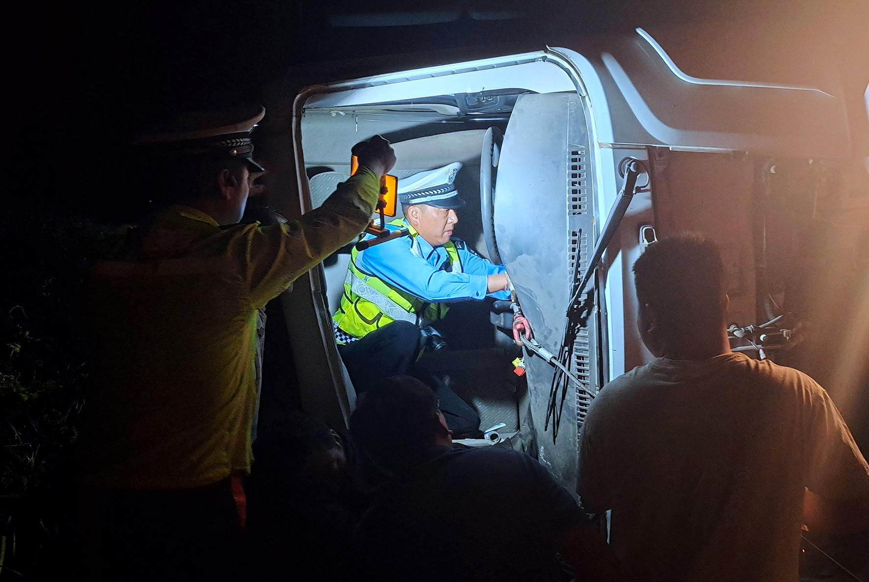 5月13日20時(shí)許,安徽省舒城縣公安局交管大隊(duì)五中隊(duì)接群眾報(bào)警,G346國(guó)道五顯鎮(zhèn)韋洼村段發(fā)生事故。接警后,民警迅速趕往現(xiàn)場(chǎng)與群眾一起將受傷駕駛員救出。
