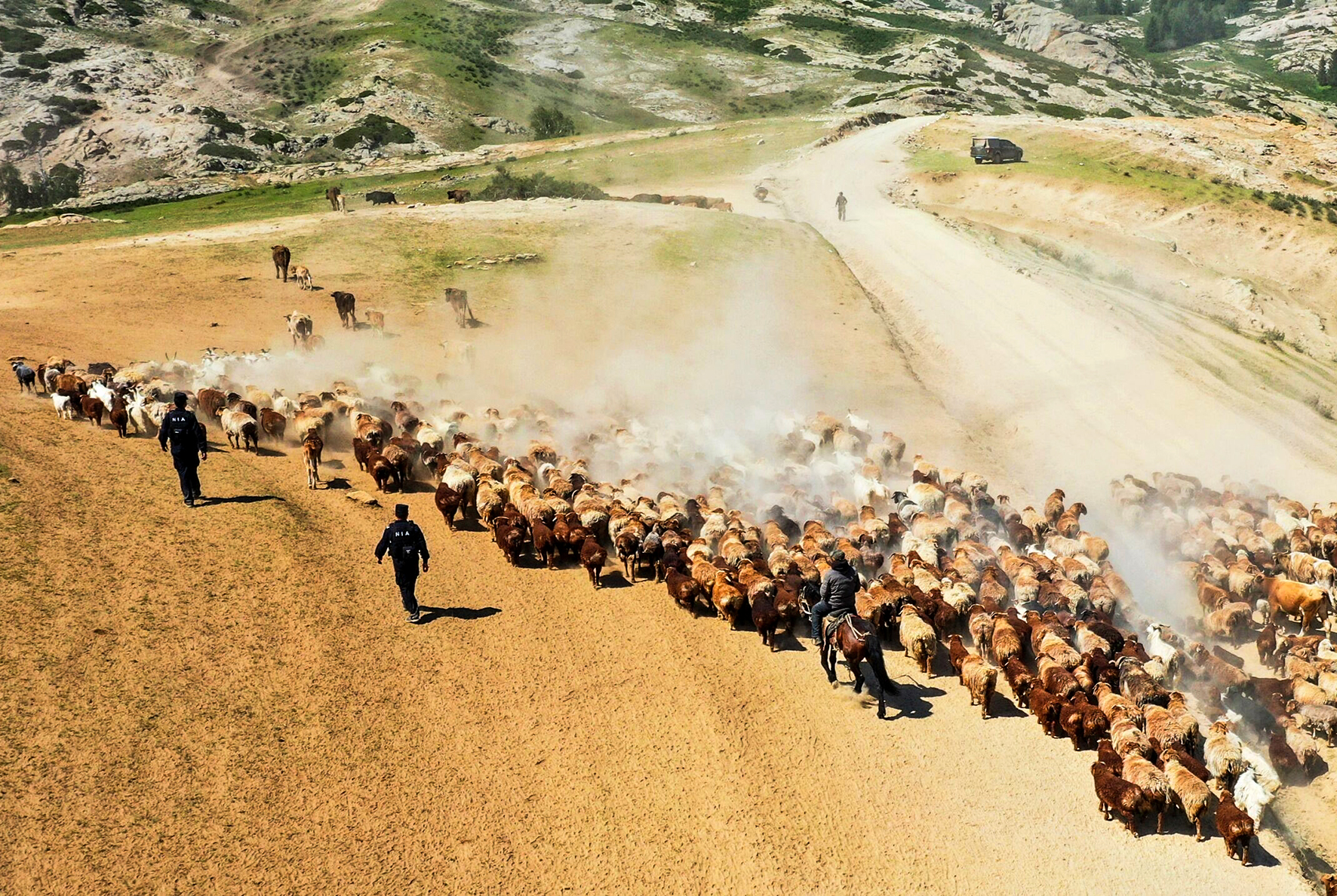 6月7日,新疆阿勒泰邊境管理支隊(duì)大橋邊境派出所由4名民警組建“護(hù)牧小分隊(duì)”分組作業(yè),守護(hù)在從沙爾布拉克至輝騰阿爾夏春秋牧場(chǎng)區(qū)域,加大對(duì)“重點(diǎn)時(shí)段”“重點(diǎn)路段”的巡查力度,助力牧民及牲畜安全到達(dá)牧場(chǎng)。
