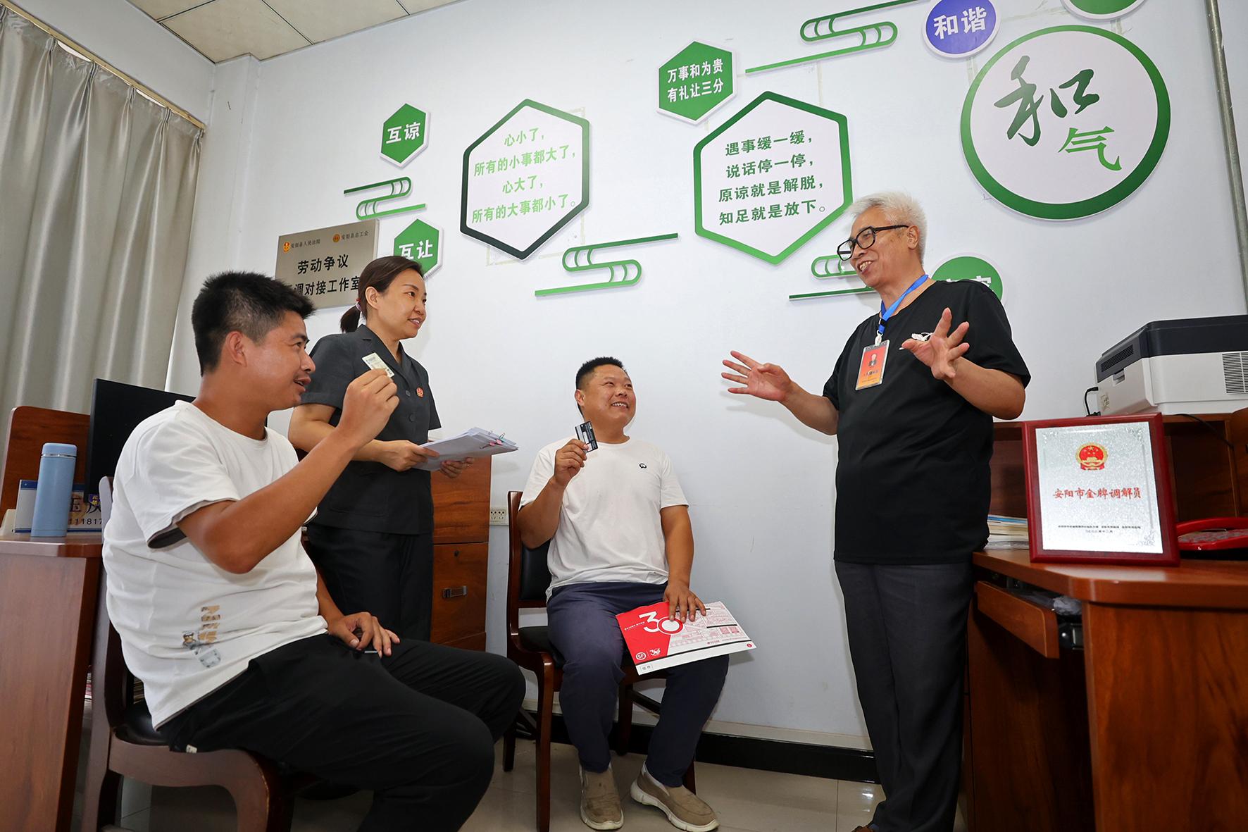 7月11日,河南省安陽縣人民法院訴訟服務中心人民調(diào)解員通過電話、微信等線上辦案模式,在訴前快速調(diào)解一起勞務合同糾紛案,兩名當事人領取工資款后喜笑顏開。