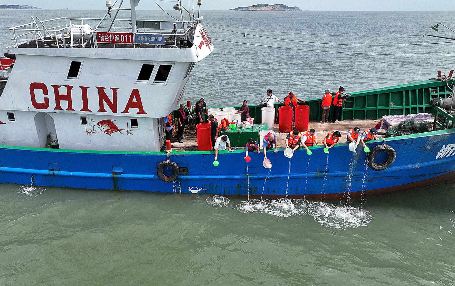 7月19日,在浙江省臺(tái)州市路橋區(qū)金清鎮(zhèn)近海海域,當(dāng)?shù)攸h員干部、政法干警、人大代表、政協(xié)委員、漁民代表等開展海洋增殖放流活動(dòng),向大海投放蝦苗2050萬(wàn)尾。