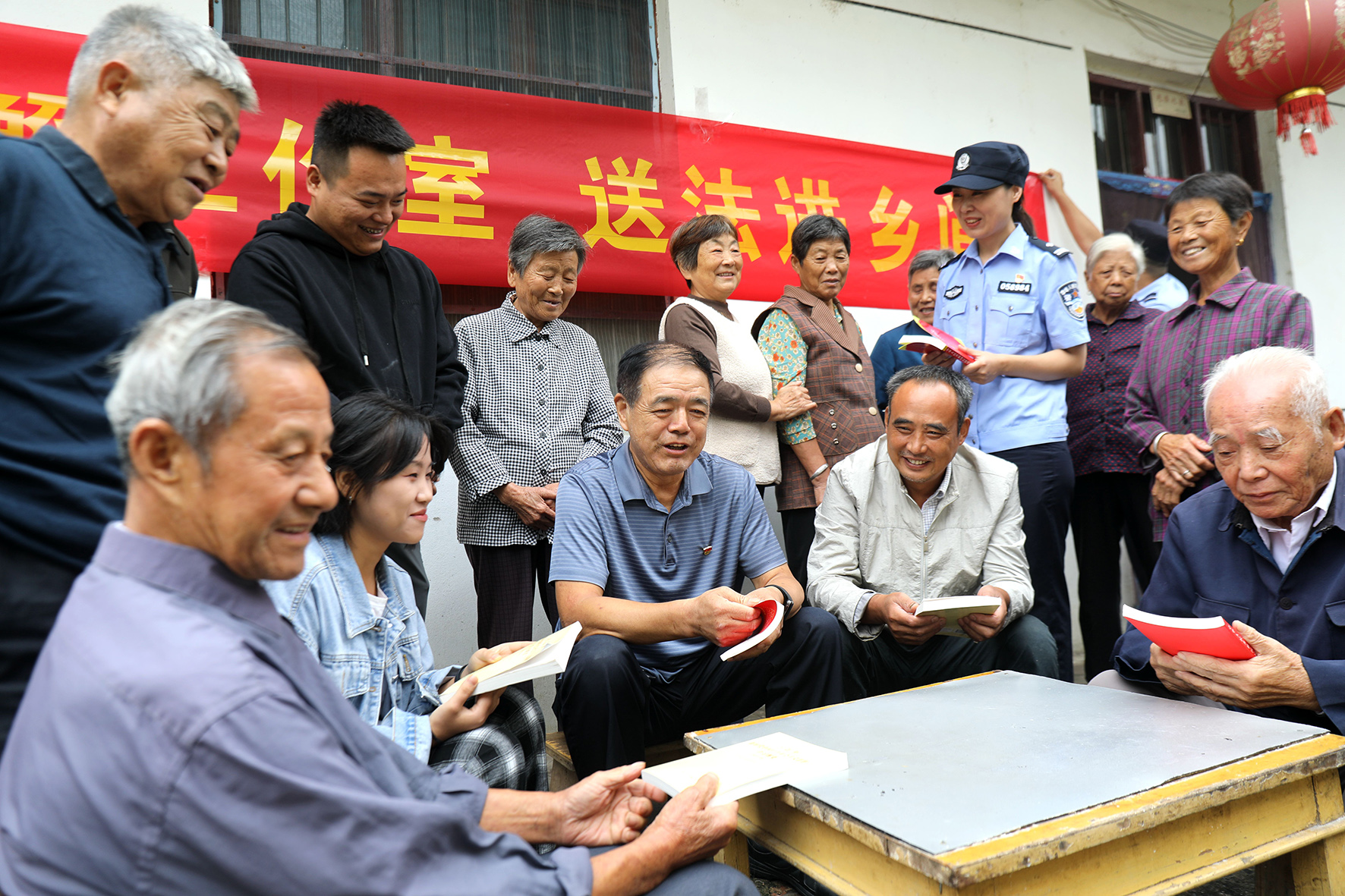 9月22日,安徽省舒城縣公安局杭埠派出所“老吳調(diào)解工作室”吳修富攜同駐村民警來(lái)到轄區(qū)河南村,向村民開(kāi)展法治宣傳。今年66歲的吳修富是一名退休民警,被派出所特聘為調(diào)解工作室調(diào)解員,負(fù)責(zé)派出所疑難復(fù)雜矛盾糾紛調(diào)處。“老吳調(diào)解工作室”是全縣首個(gè)以個(gè)人名義命名的警民聯(lián)調(diào)室,遇事開(kāi)展調(diào)解空閑時(shí)間下鄉(xiāng)普法。