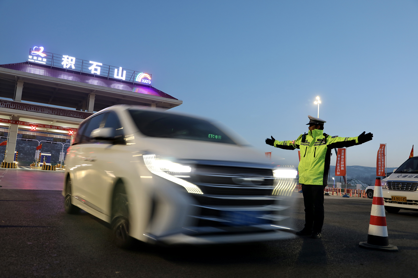 12月26日晚,甘肅省東鄉(xiāng)縣公安局民輔警在積石山臨大高速路口頂著寒風全力疏通保暢,堅守在抗震救災(zāi)第一線。