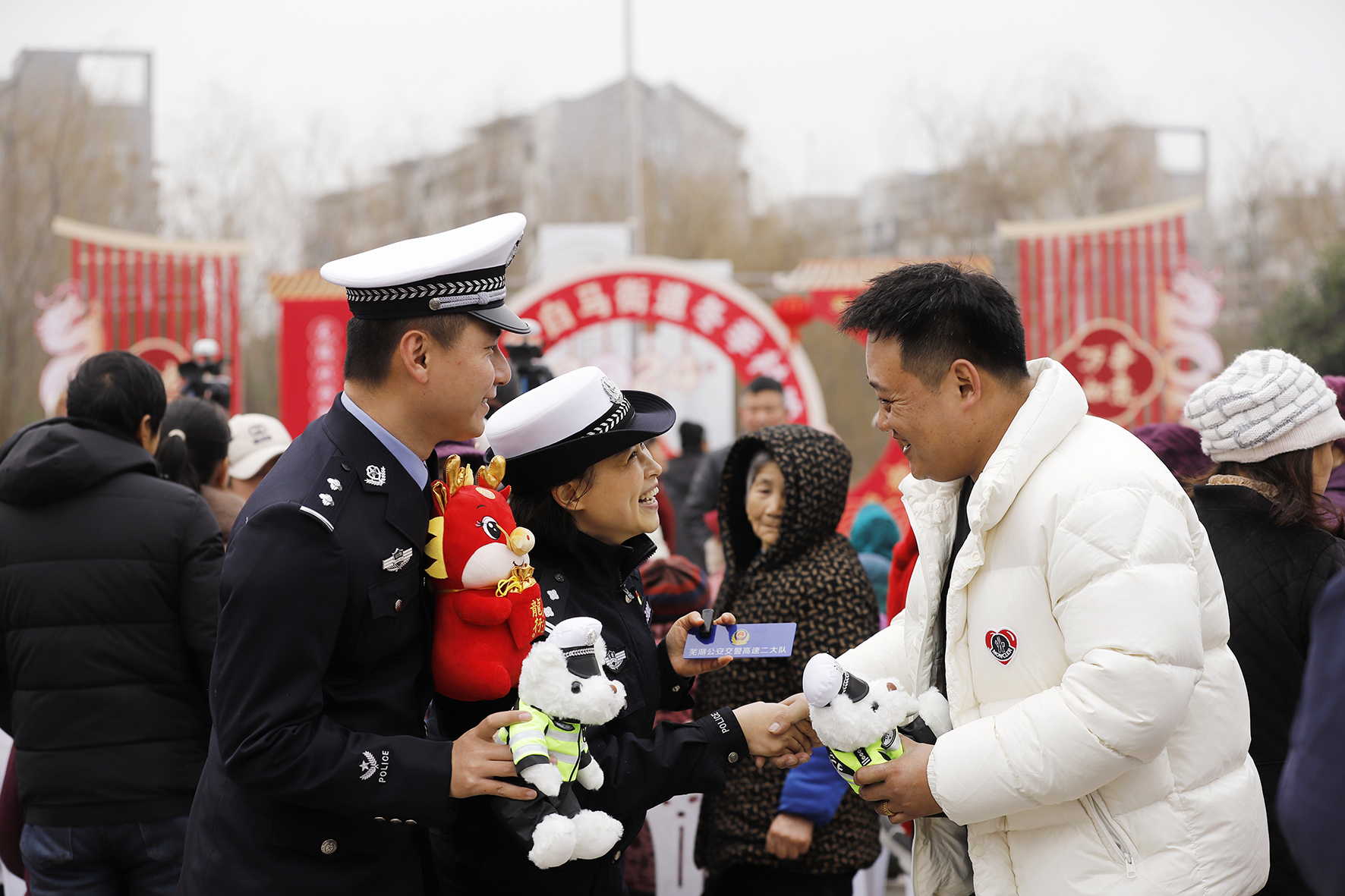 1月17日,安徽省蕪湖市公安局交警支隊(duì)高速二大隊(duì)民警走進(jìn)弋江區(qū)白馬街道冬季“村晚”現(xiàn)場(chǎng),通過(guò)“交通知識(shí)你來(lái)答‘熊熊’‘火火’過(guò)大年”活動(dòng),向廣大群眾宣傳“一盔一帶”、高速公路安全行車等交通安全知識(shí),共迎“春運(yùn)”,共祝平安。