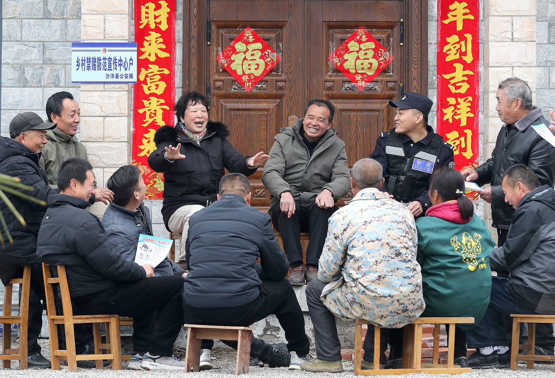 2月28日,在湖北省沙洋縣馬良鎮(zhèn)耀星村,“鄉(xiāng)村禁賭防范宣傳中心戶”王友軍夫婦向鄰居們宣傳賭博危害。
