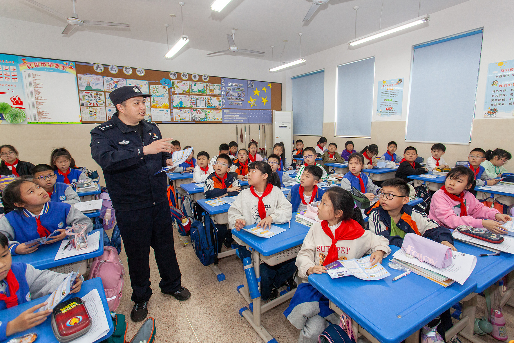 3月25日,浙江省臺(tái)州市公安局黃巖分局城東派出所民警在東城小學(xué)開展安全防范宣教活動(dòng)。