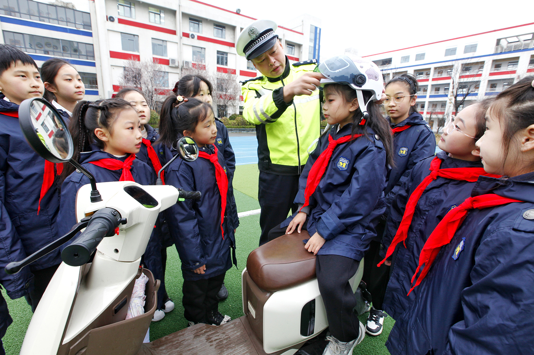 3月21日,在第29個(gè)“全國(guó)中小學(xué)生安全教育日”來(lái)臨之際,安徽省合肥市公安局交警支隊(duì)公巡一大隊(duì)民警走進(jìn)習(xí)友路小學(xué),開展交通安全進(jìn)校園活動(dòng)。