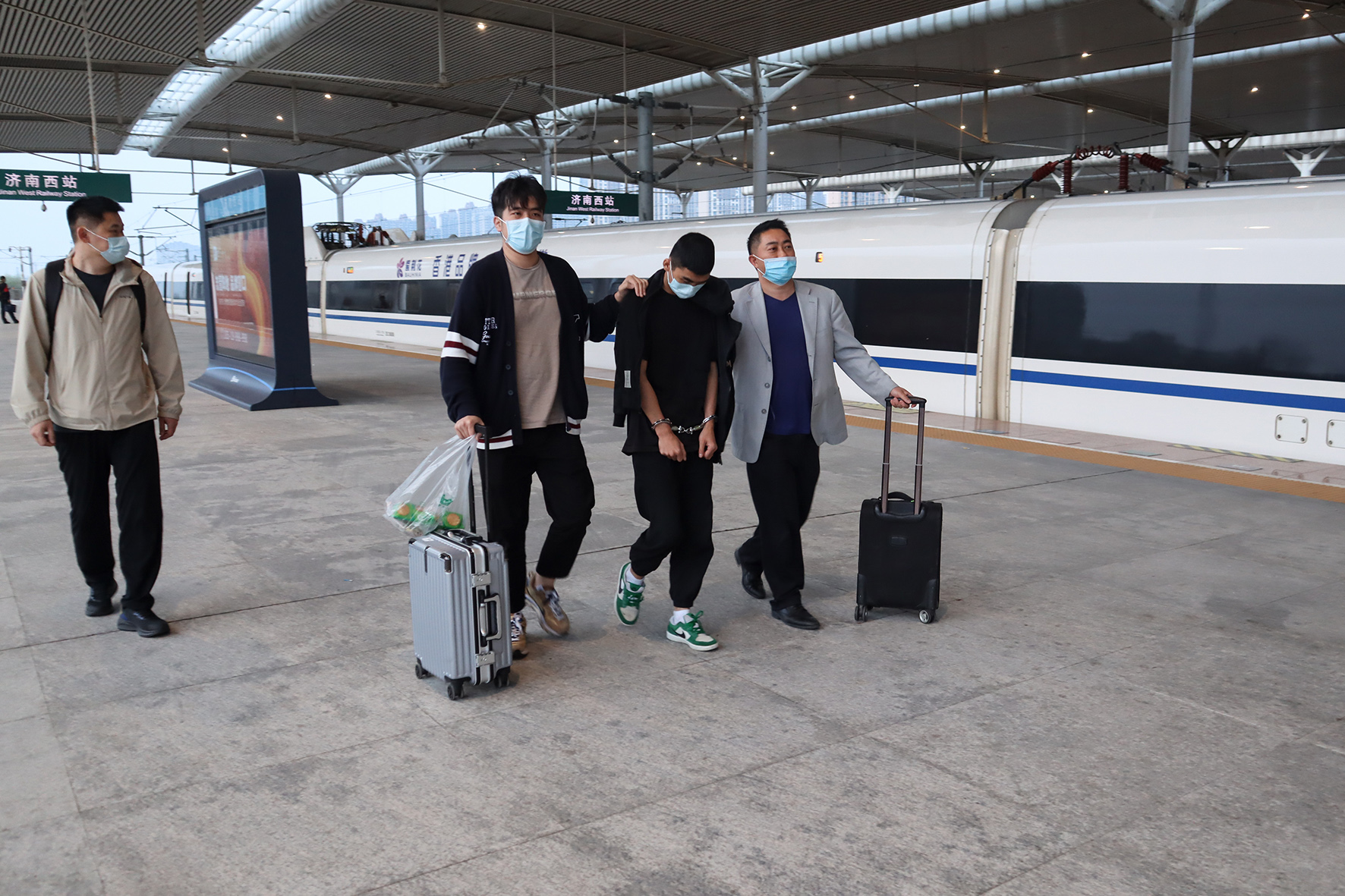 3月27日18時(shí)21分,從廣西南寧開往山東濟(jì)南的G436次高鐵緩緩駛進(jìn)濟(jì)南西站,濟(jì)南市公安局市中區(qū)分局辦案民警將網(wǎng)上詐騙43000余元的犯罪嫌疑人張某押下車。自此,一場持續(xù)三天的抓捕行動(dòng)圓滿結(jié)束。