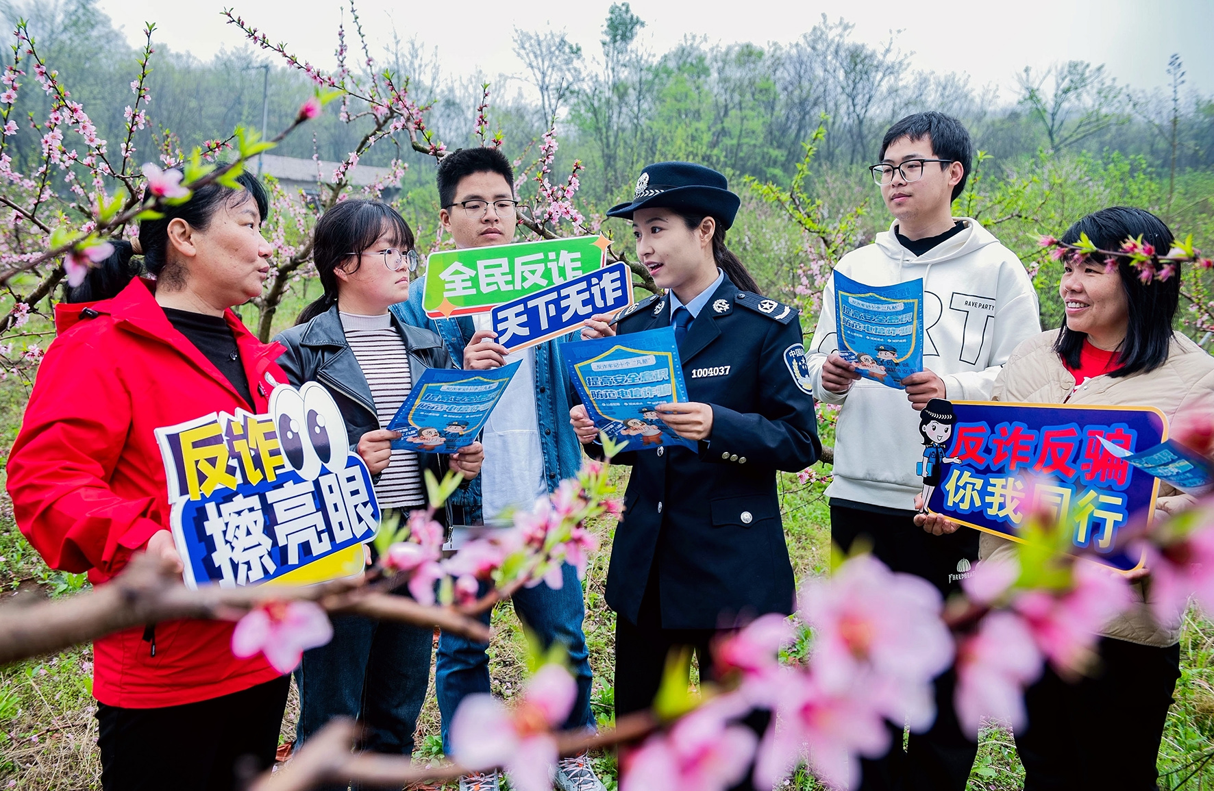 4月3日,安徽省含山縣司法局普法宣傳小分隊(duì)在仙蹤鎮(zhèn)六衖村桃花園向游客宣傳反詐知識(shí)。當(dāng)日,含山縣司法局開展“游桃園 說反詐”普法宣傳活動(dòng),普法工作人員以“拉家?!钡姆绞脚c游客面對(duì)面交流,普及防騙知識(shí)。