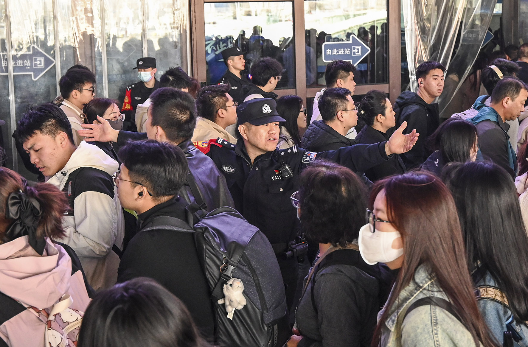 圖為4月4日,沈陽(yáng)鐵路公安局沈陽(yáng)公安處民警在沈陽(yáng)北站全力維護(hù)進(jìn)站秩序。