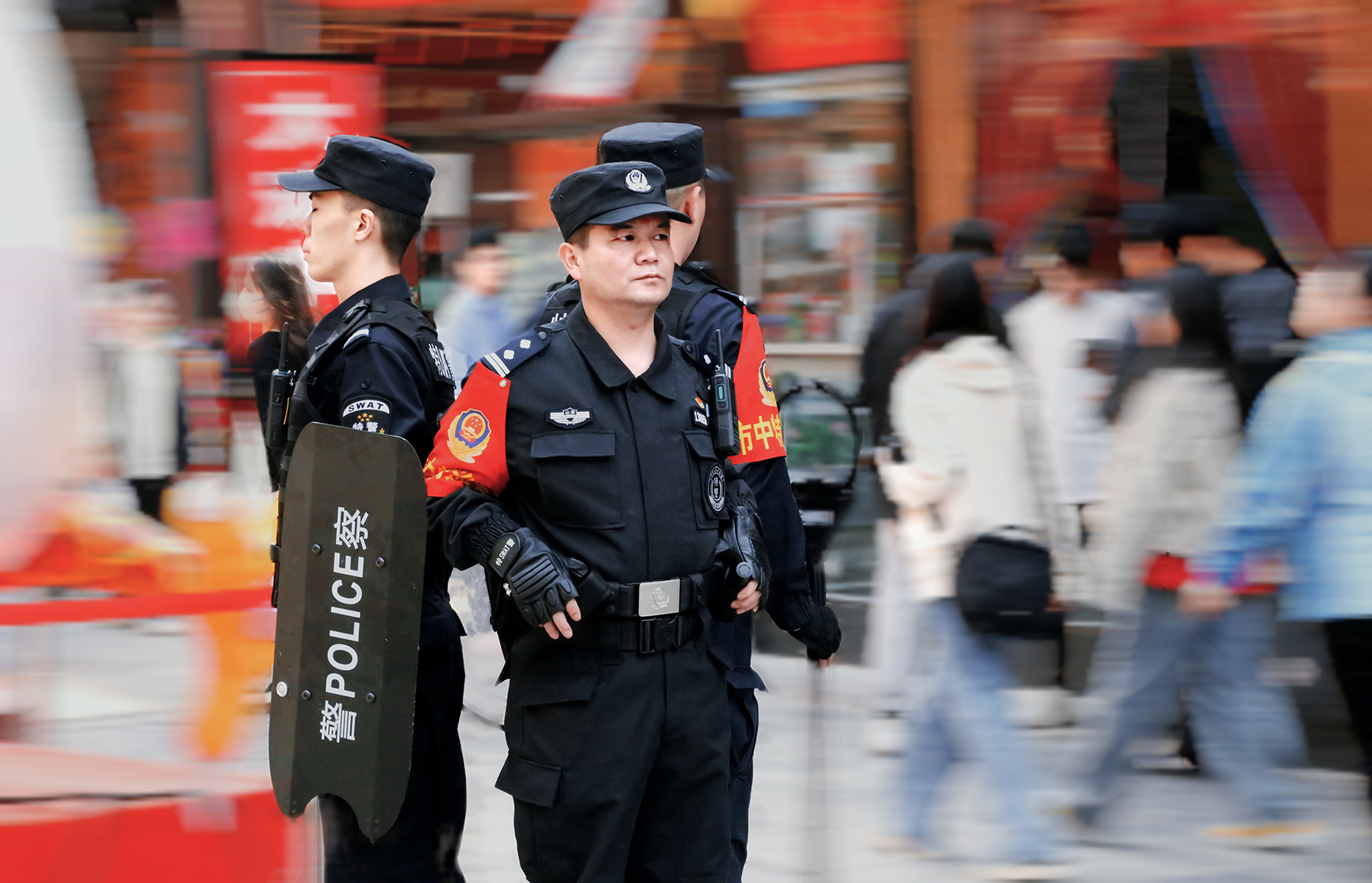 4月5日,山東省濟(jì)南市公安局市中區(qū)分局特巡警大隊(duì)民警在老商埠區(qū)巡邏執(zhí)勤,為市民游客提供服務(wù)。