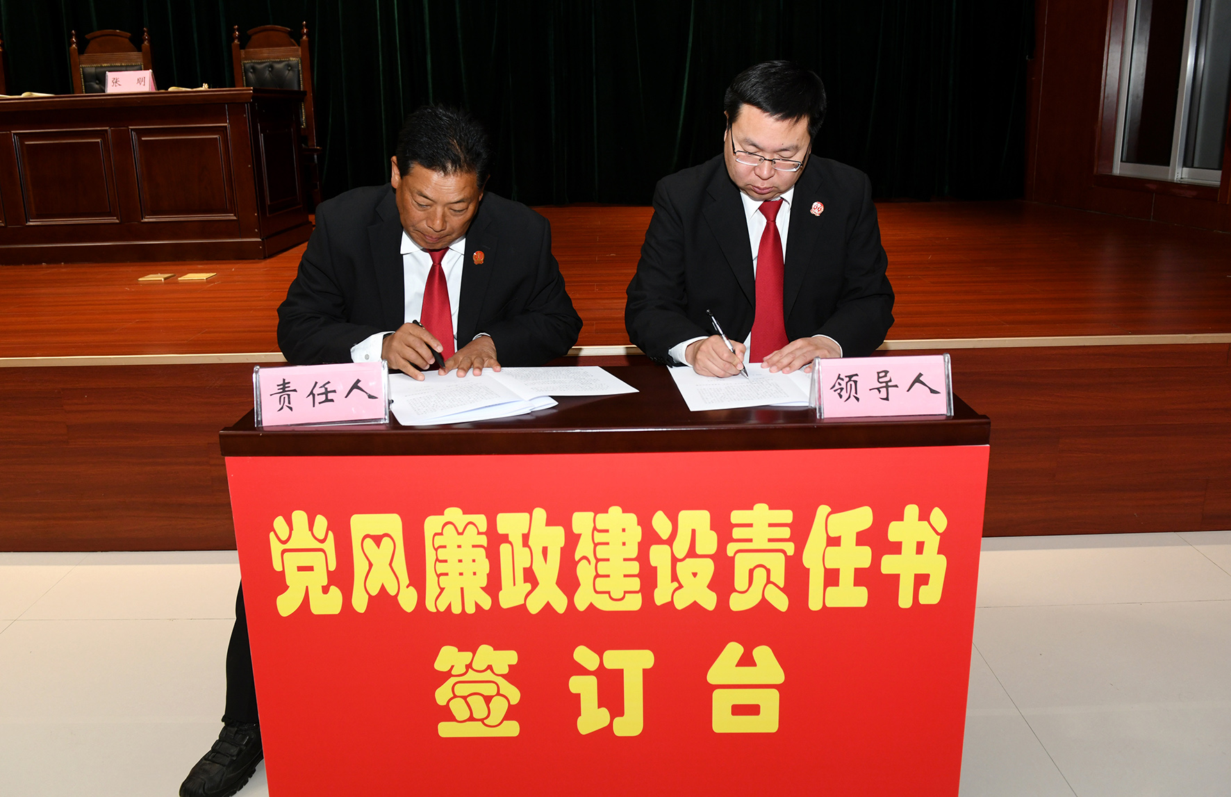 4月7日,在安徽省宿州市埇橋區(qū)人民法院黨風(fēng)廉政建設(shè)會(huì)議上,班子成員在簽訂黨風(fēng)廉政建設(shè)目標(biāo)責(zé)任書(shū)。