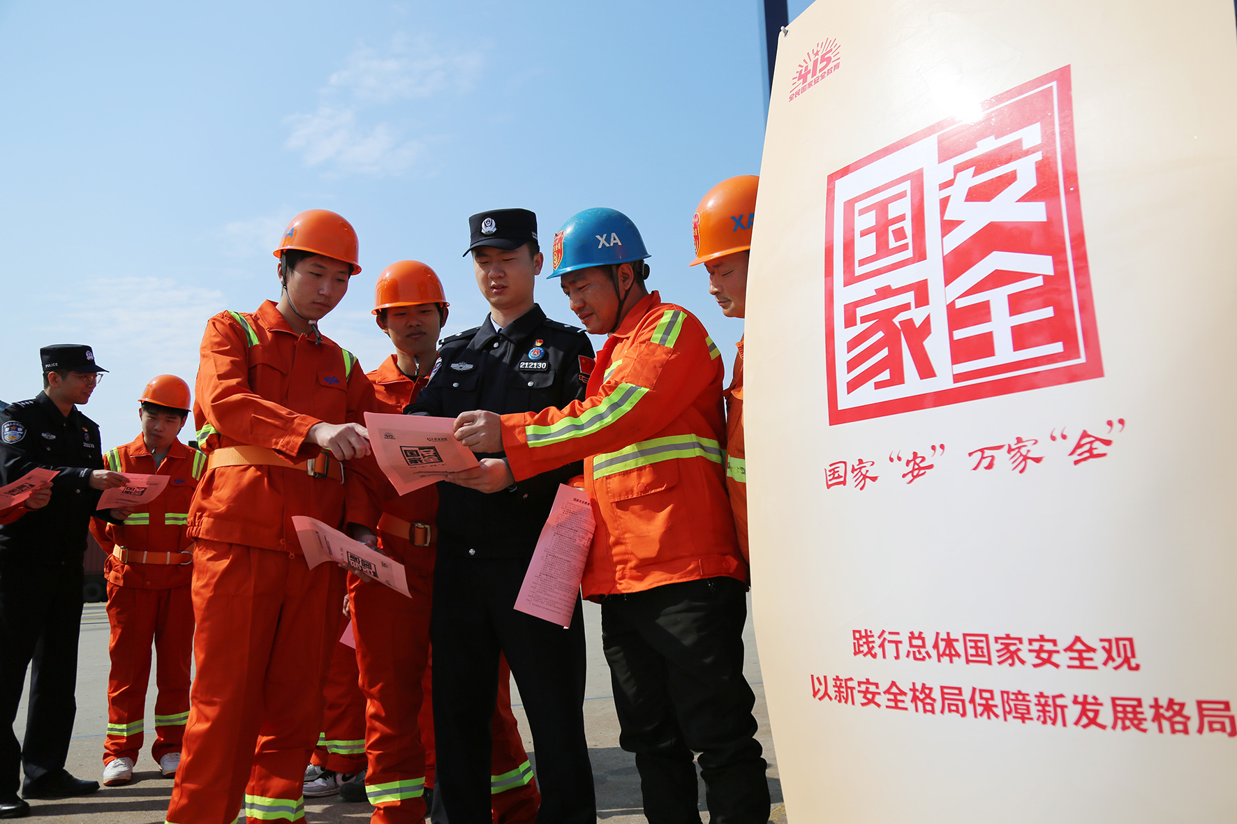 圖為4月11日,民警輔警會同工業(yè)區(qū)平安辦工作人員、平安志愿者在轄區(qū)開展國家安全知識宣傳。