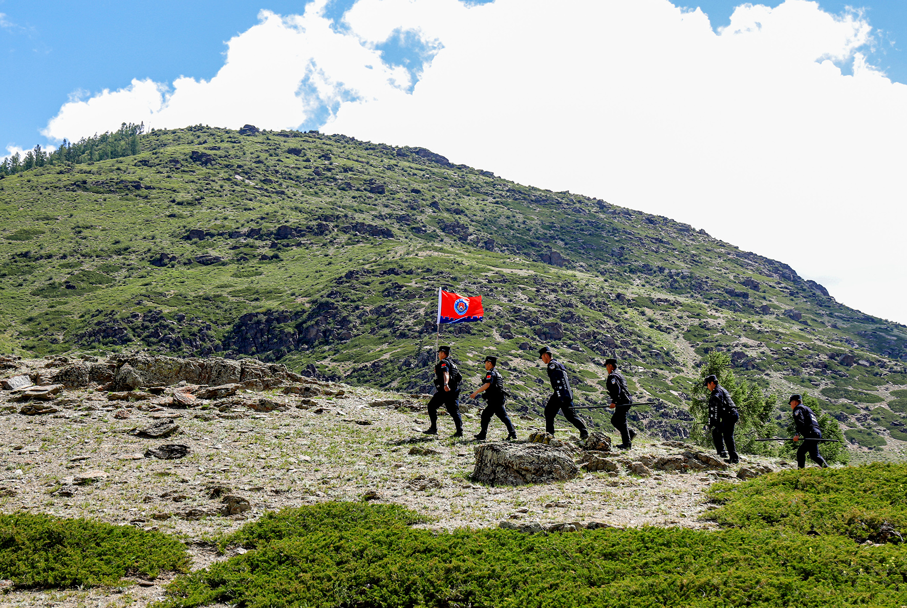 6月2日,隨著牧民夏季轉(zhuǎn)場,新疆出入境邊防檢查總站阿勒泰邊境管理支隊富蘊邊境管理大隊庫衛(wèi)邊境派出所組織民輔警分批次對邊境前沿重點牧道、山口開展巡邏踏查工作。