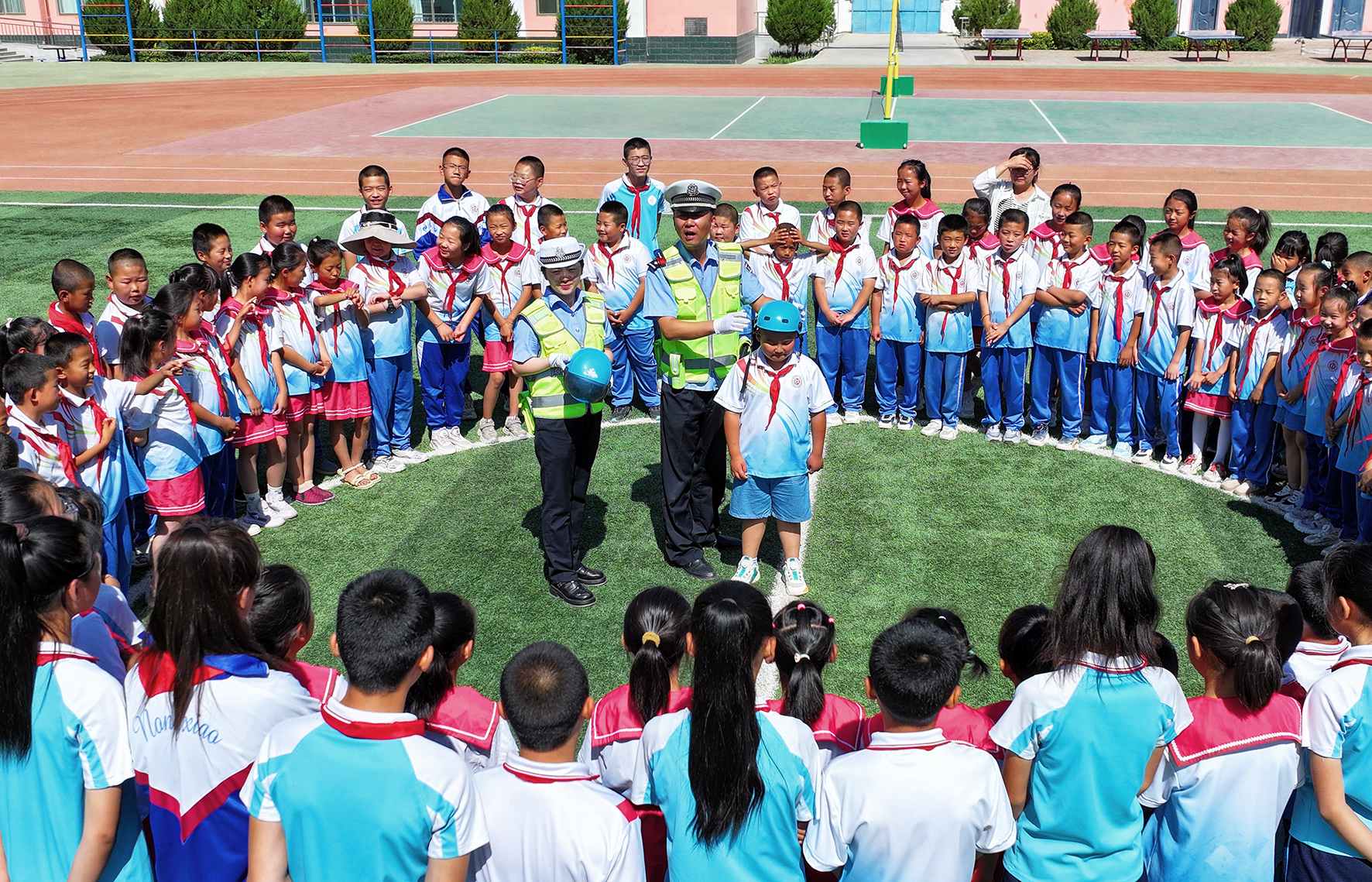 7月2日,甘肅省臨澤縣公安局交警大隊(duì)民警走進(jìn)新華農(nóng)場小學(xué),通過現(xiàn)場授課、體驗(yàn)VR眼鏡、學(xué)做交通手勢、認(rèn)識交通指示牌等寓教于樂的方式向?qū)W生們普及交通安全知識。