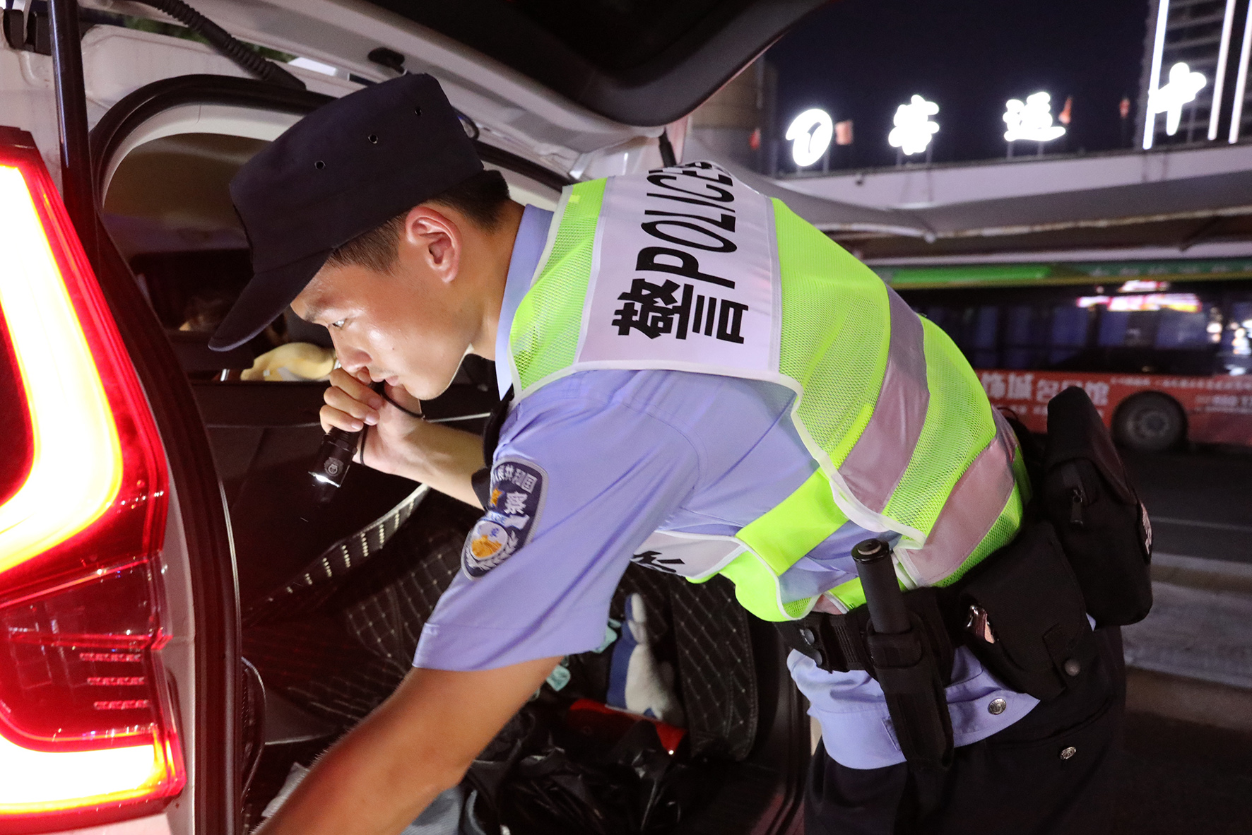 7月6日晚,安徽省合肥市公安局交警支隊(duì)瑤海大隊(duì)民警在街面嚴(yán)查交通違法行為。