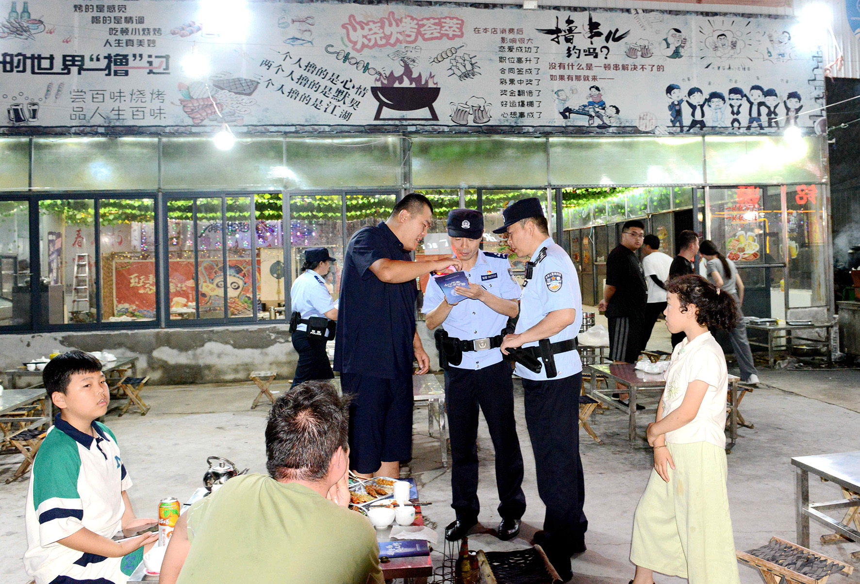 7月6日晚,安徽省寧國(guó)市公安局針對(duì)夏季易發(fā)打架斗毆類違法行為特點(diǎn),在夜宵攤點(diǎn)等人員密集場(chǎng)所集中開展巡查宣防,借助算好違法“成本價(jià)”,教育引導(dǎo)廣大市民共同營(yíng)造平安有序的社會(huì)治安環(huán)境。