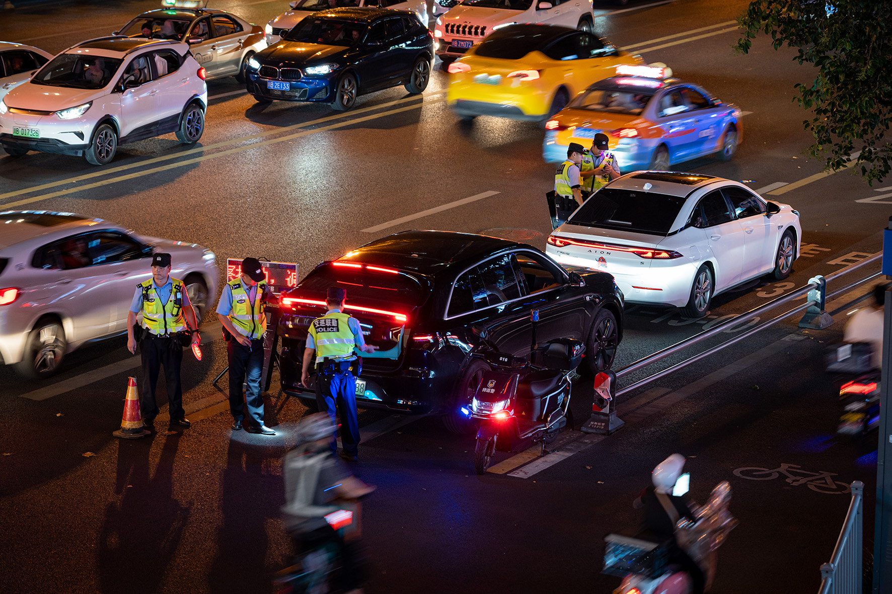 7月6日晚,山西省運(yùn)城市新絳縣公安局交警大隊(duì)民輔警在全國(guó)公安機(jī)關(guān)夏夜治安巡查宣防集中統(tǒng)一行動(dòng)中嚴(yán)查酒駕等嚴(yán)重交通違法行為。
