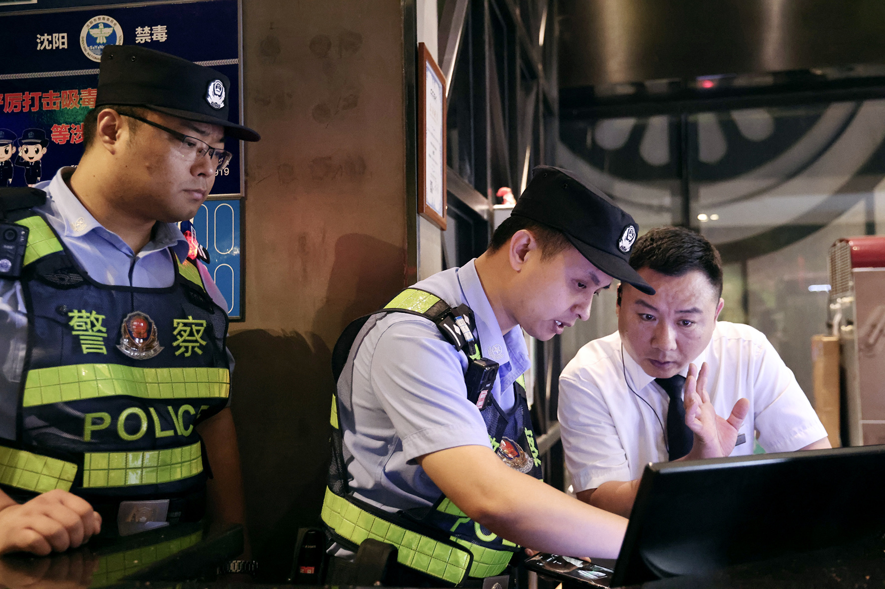 7月6日晚,遼寧省沈陽(yáng)市公安局和平分局太原街派出所民警在酒店和娛樂場(chǎng)所進(jìn)行檢查。