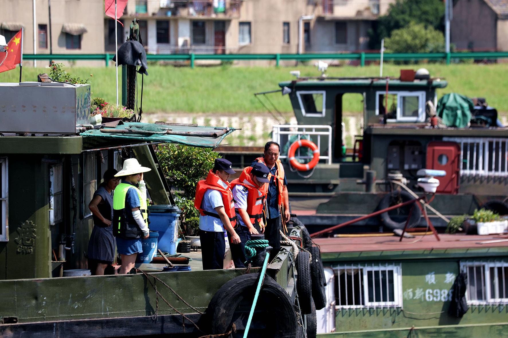 8月3日,安徽省舒城縣公安局杭埠派出所民警輔警在轄區(qū)河南碼頭開展走訪,講解安全注意事項,確保轄區(qū)水上交通和船只安全穩(wěn)定。
